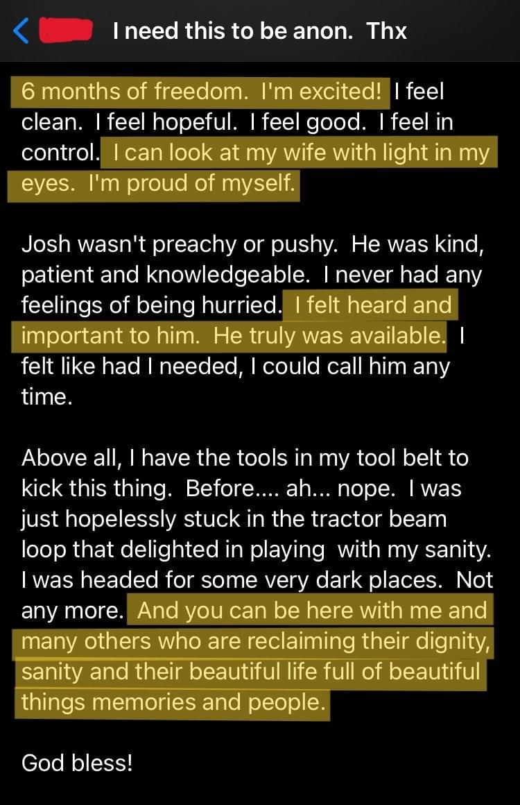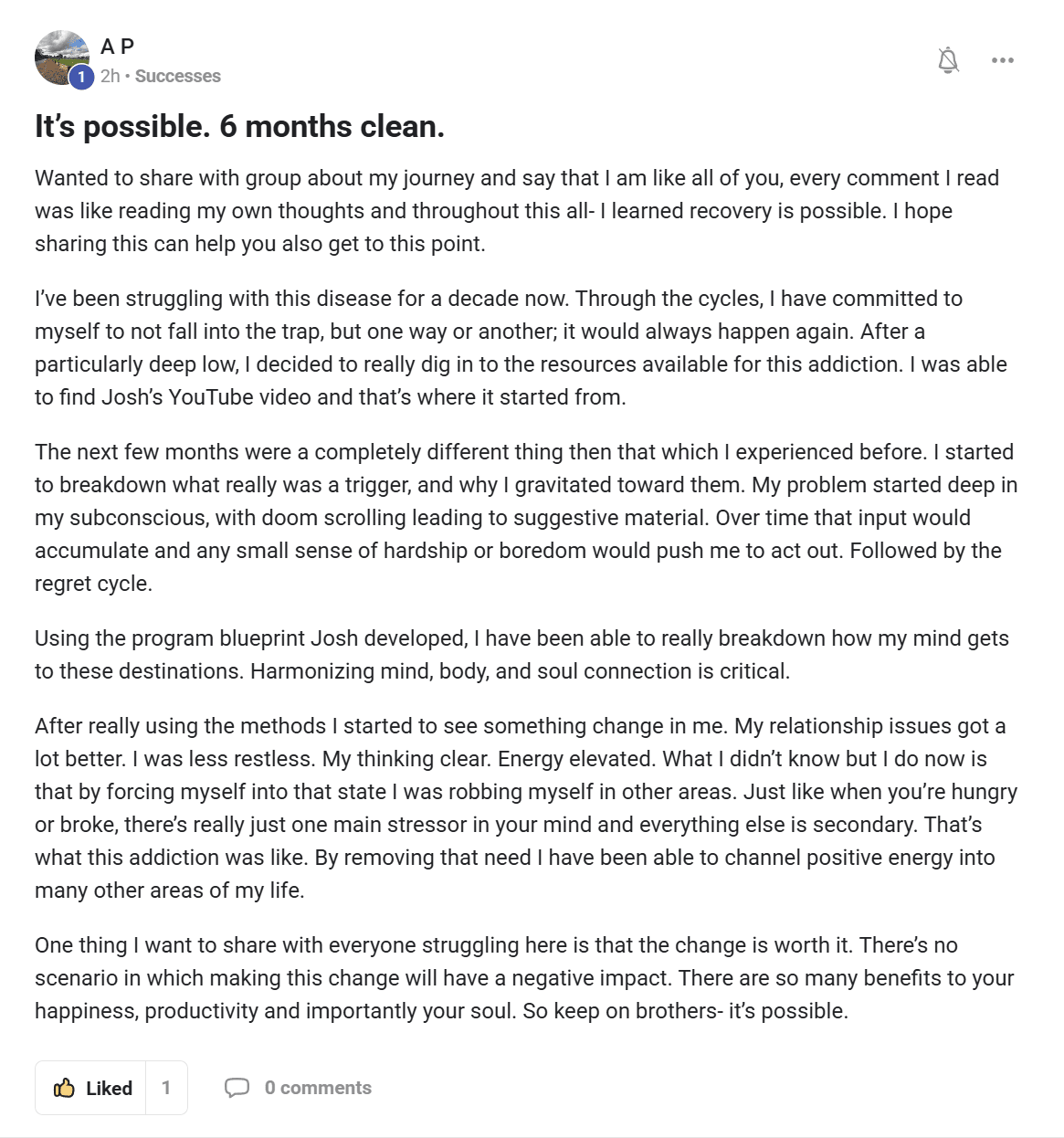 You’ll get 1-on-1 coaching, recovery tools, and day-round access to reach out directly — whether you're facing a sudden urge, need guidance, or want to jump on a quick call.